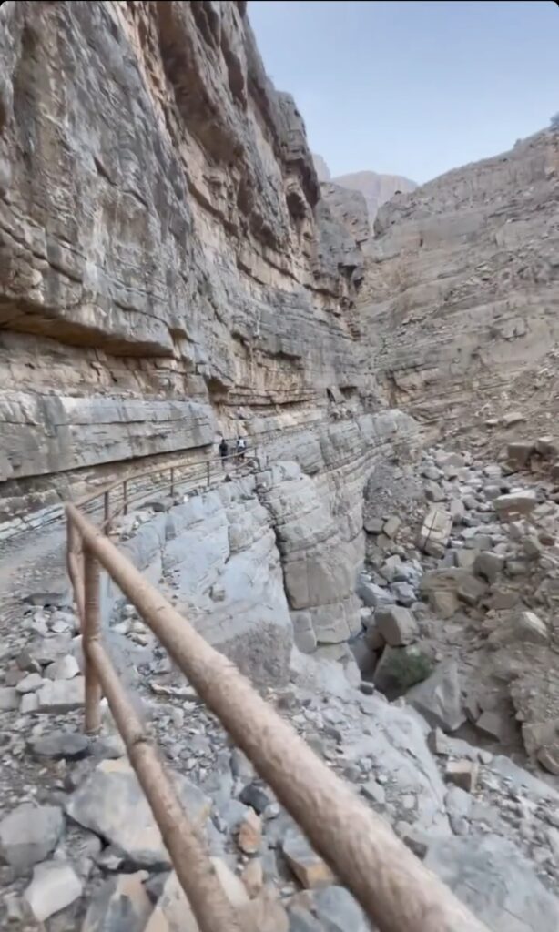 The section from CP 5 to the remote CP 6, is beautiful. It is the trail leading to the Hidden Oasis. The ravine and boulder section is normally amazing to navigate through. But at this point, it just felt hard. I didn’t appreciate the views much, nor the trail. It just felt hard. My injured ankle had also taken a beating on the last fall, and I had forgotten to ask if anyone in CP 5 had any duct tape or superglue I could use to put my shoe better together. At this point, though, it wasn’t any running going on. What was in store was a long, uphill hike at crawling pace to CP 6 - Baighit, above the green oasis.