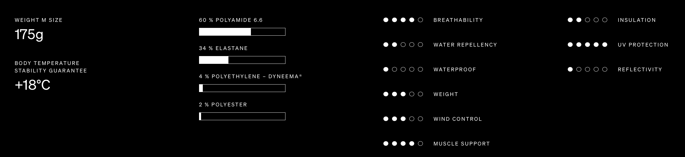 Made from a proprietary high density woven fabric, this panel provides additional compression to create a zone of support for the lumbar and gluteal musculature. The improved stability results in increased power output.